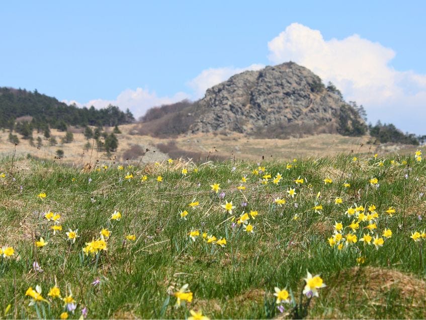 Parco del Beigua (SV) - Alla vostra destra, praterie e boschi. A sinistra, mille metri più in basso, il mare. Questa escursione nel Parco del Beigua ci porterà davanti a panorami sorprendenti che danno il meglio in primavera. Se saremo fortunati, attraverseremo le distese di narcisi che solitamente qui fioriscono tra aprile e maggio. Percorso non difficile ma piuttosto lungo.